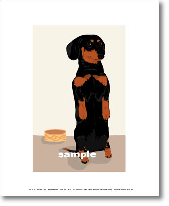 Eating is a very important part of the dachshund day and this black/tan dachshund is quick to let you know that it's dinner time.