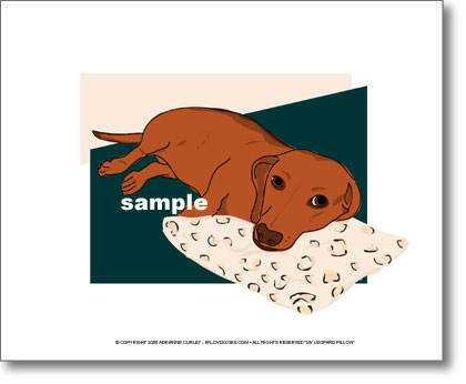 Dachshunds love kitty cats, the bigger the better. This doxie loves to nap on his favorite fuzzy leopard pillow.