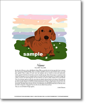 This print may be personalized with your doxie's name and/or dates over the Rainbow Bridge story.
